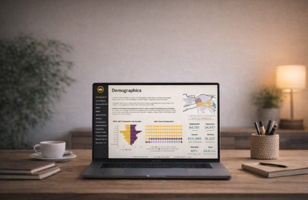 Introduced in 2025, the ArcGIS StoryMap Series is a curated collection of interactive stories highlighting key topics in King of Prussia, including mobility, housing, life sciences and outdoor recreation. Designed to be engaging and accessible, these StoryMaps help users explore community trends through maps, data and visuals.