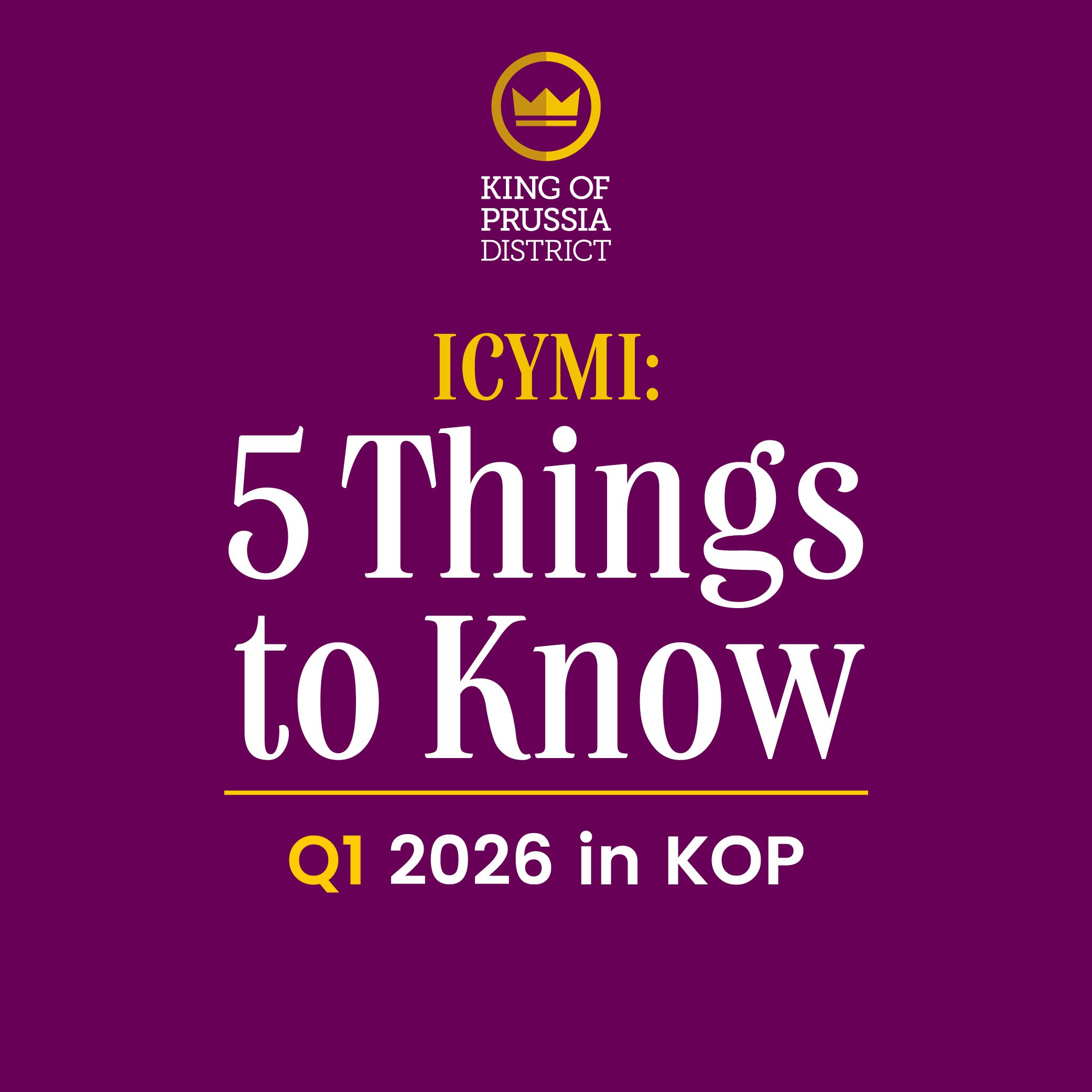 Want to catch up on the latest? We’ve got you covered. Here are five key updates every King of Prussia aficionado should know from Q1 2026: